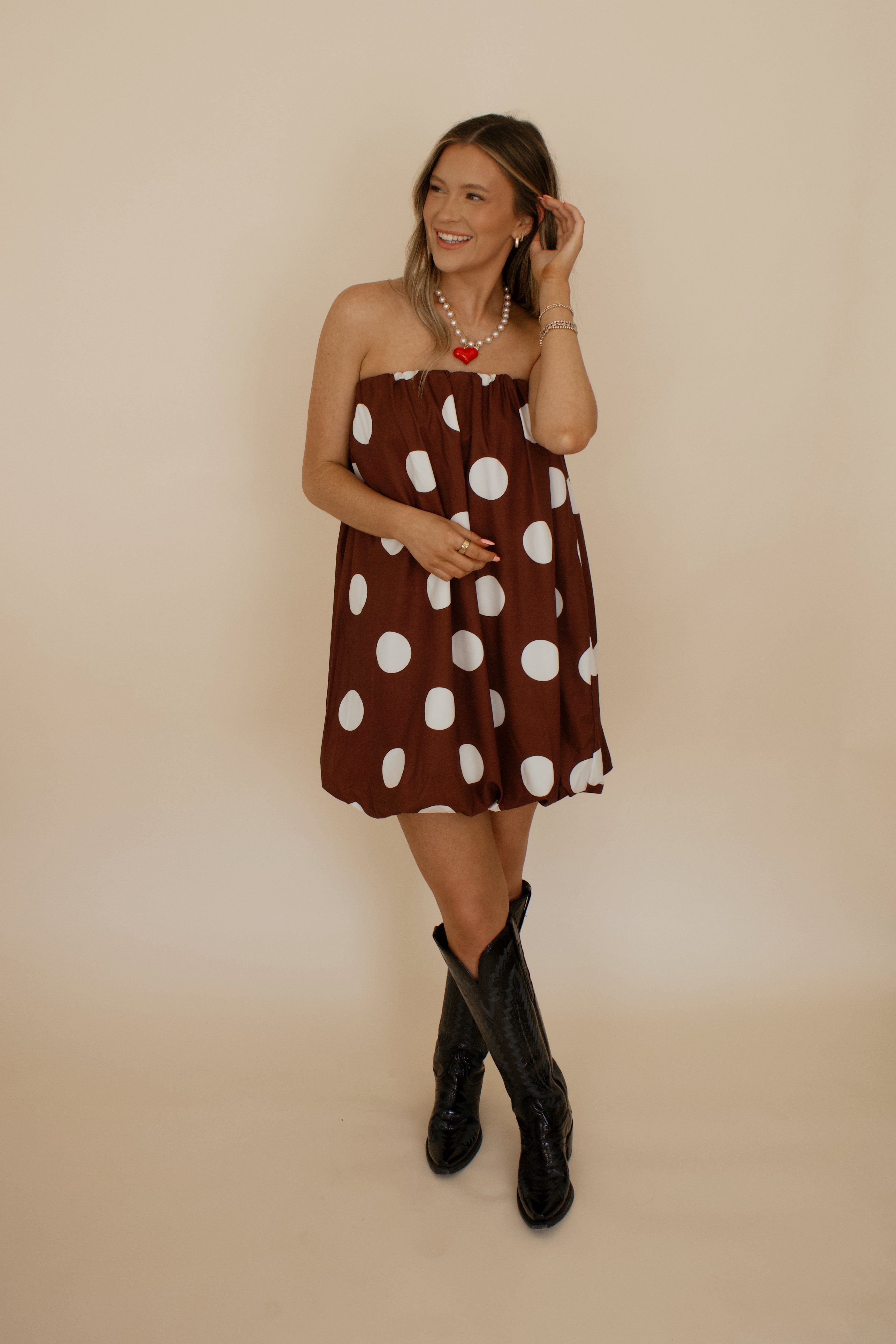 Polka Dot Off Strapless Tube Balloon Dress