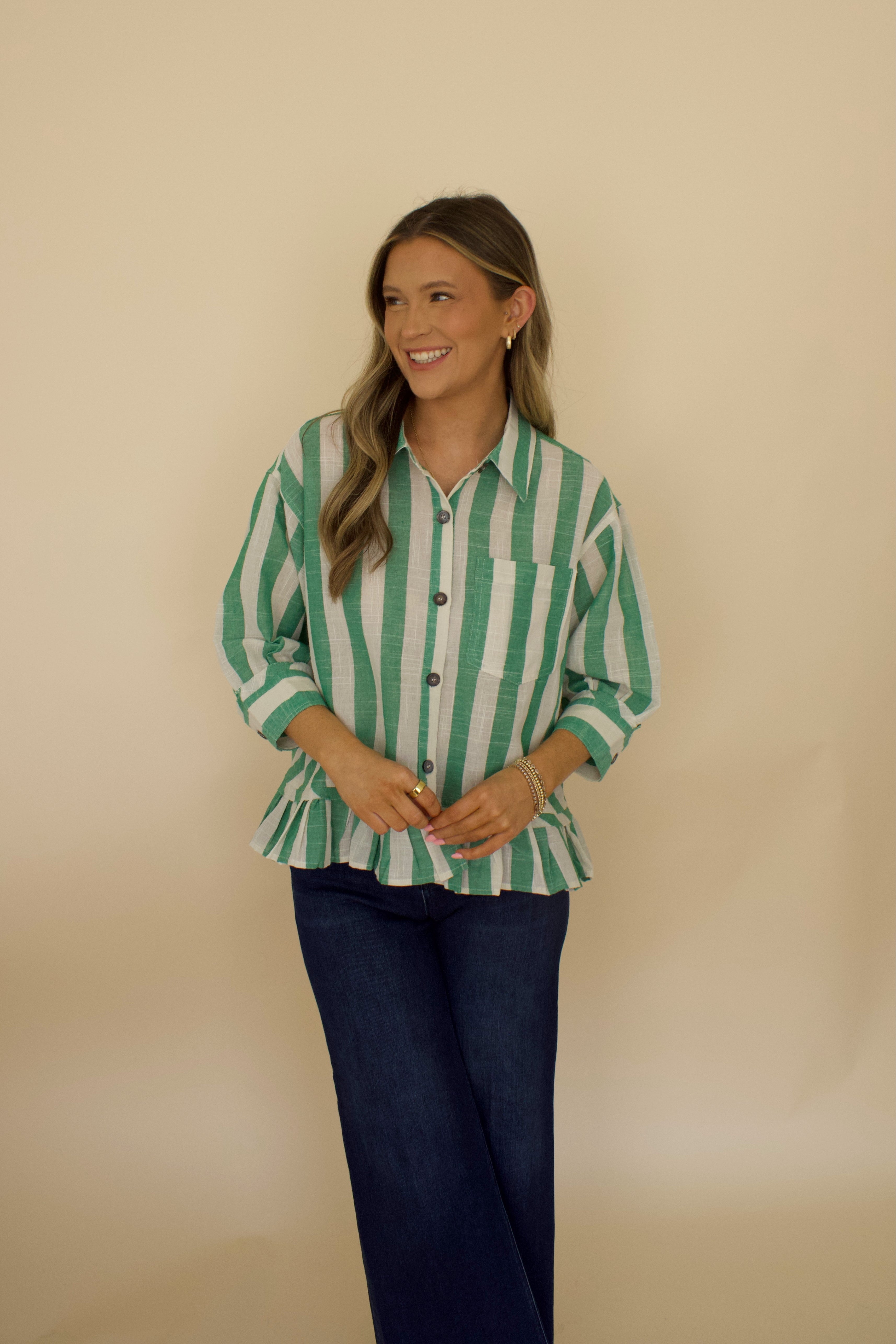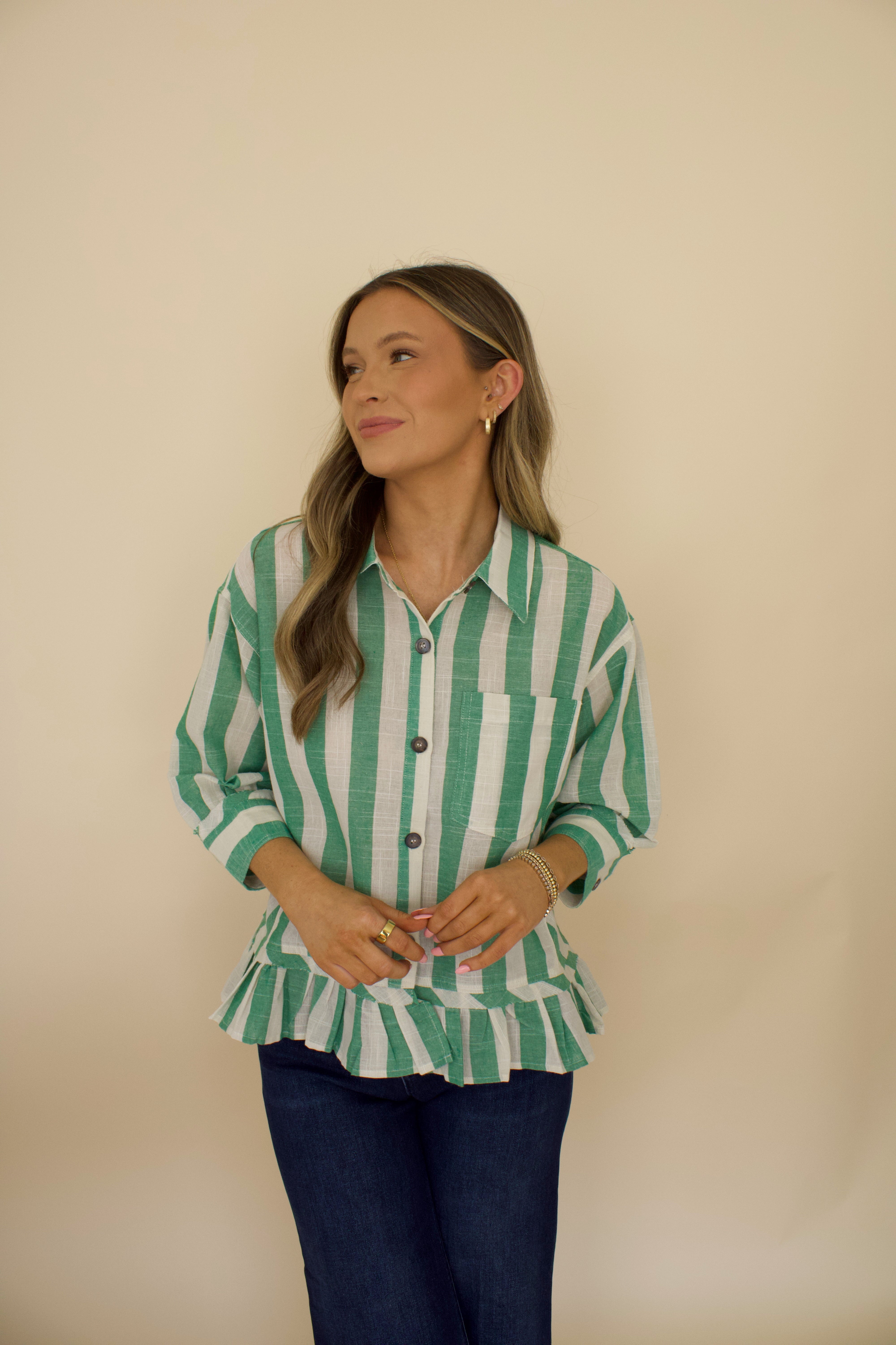 Madelyn Green Striped Top